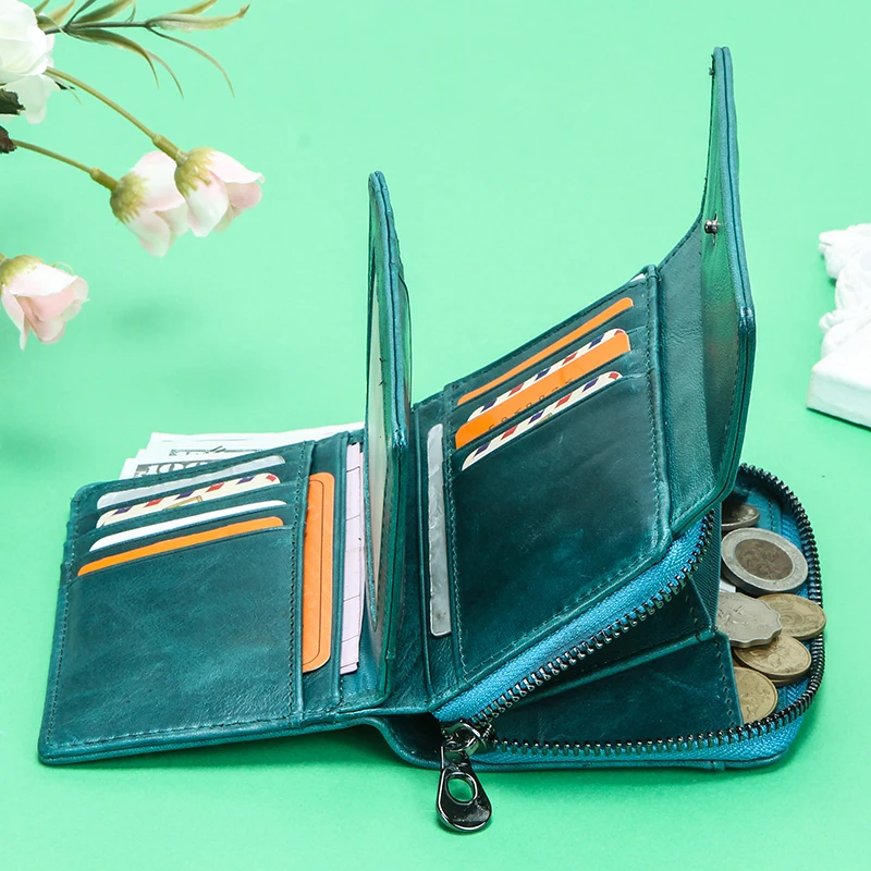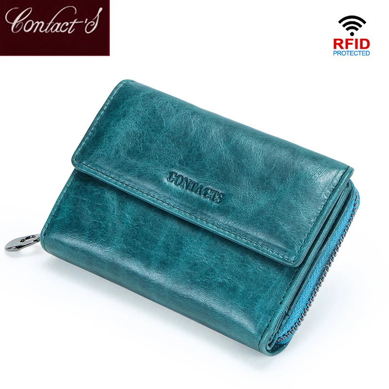 Big Deal Contact's RFID Short Wallet Female Genuine Leather Coin Purse Small Wallets Women Card Holder Zippe